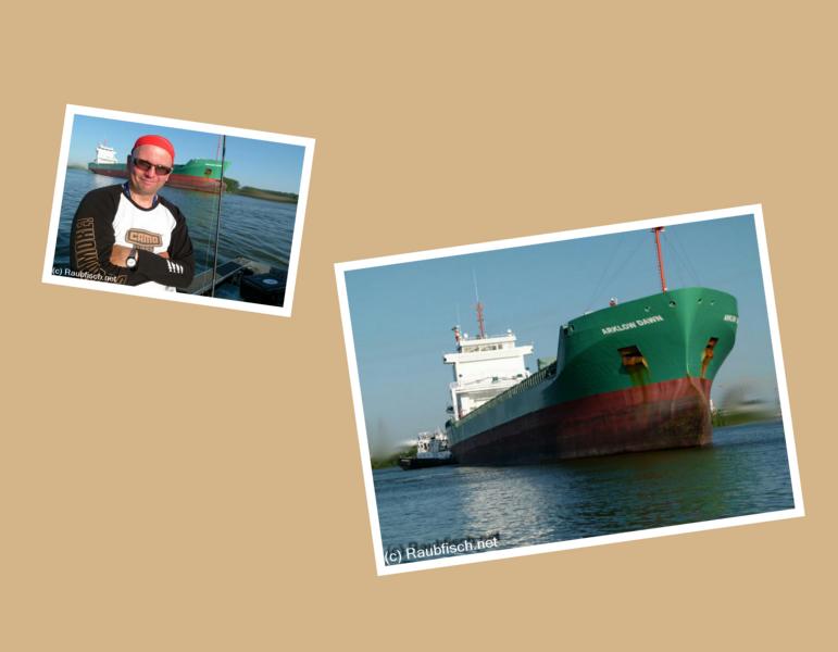 Danach dann erstmal in den Angelladen. Uli's erster Besuch dort hinterließ Eindruck bei ihm, und ein kleines Loch in unseren Geldbörsen. Natürlich brannten wir beide darauf, die neu erworbenen Kleinigkeiten auszuprobieren. Wie gestern geplant erreichten wir um ca. 15:00 Uhr die Slippe. Kaum war das Boot im Wasser, gab es die erste böse Überraschung des Tages. Ein Schlepper blockierte die Hafenausfahrt, kein Durchkommen.