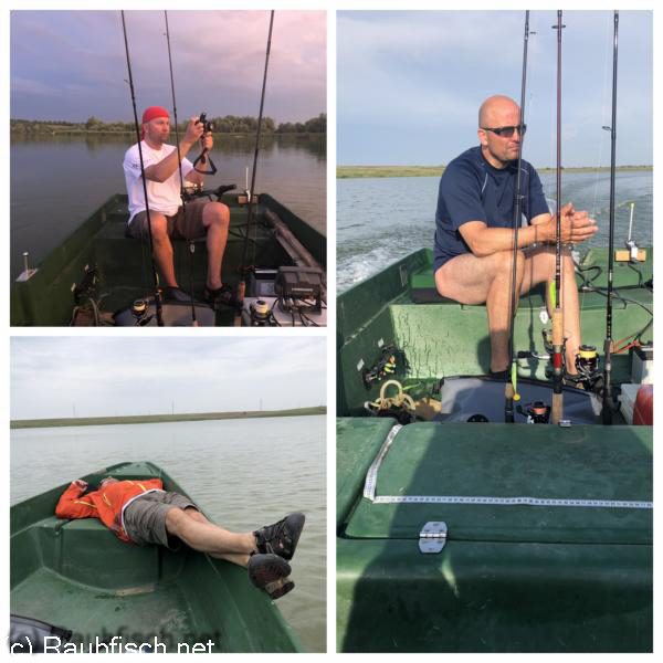 Auch das andere Boot fing einige Zander, wurde jedoch ebenfalls noch mit etwas besonderem „beschenkt“. Guido konnte an einer flachen Kante mit reichlich Totholz einen Wels mit 1,3m haken und mit etwas Glück und gelöstem Anker während des Drills auch landen. Da Guido ja eine ausgemachter „Welsfan“ ist, hat dieser Fisch beim richtigen angebissen. Somit war dieser letzte Tag mit drei Ausnahmefischen und insgesamt gut 20 Zandern noch mal ein schöner Abschluss.