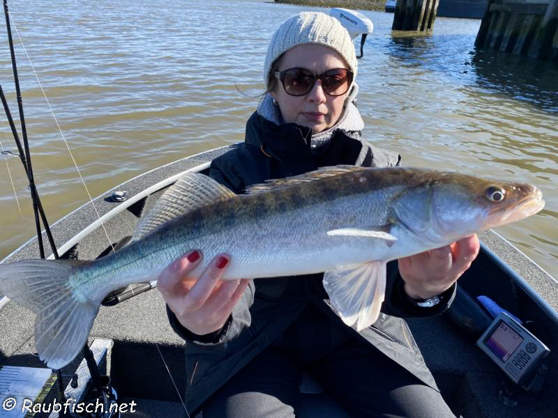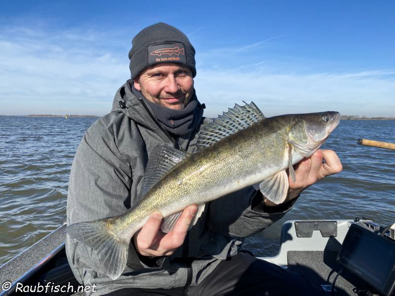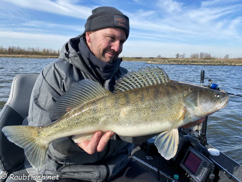 Für Lilly war es das erste Mal hier und die schiere Größe des Gewässers flößte ihr etwas Respekt ein. "Wo sollen wir denn hier die Fische finden?" . Wir fanden sie, schon nach einer halben Stunde endlich der erste Zander bei mir, und damit auch der erste Fisch des Jahres 2022 !