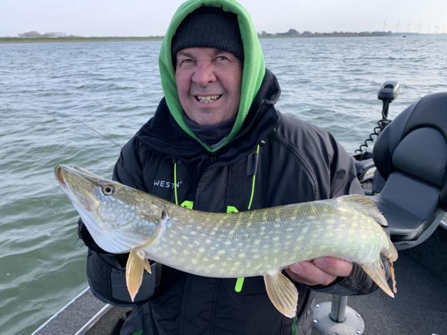 Nach einem ausgiebigen Frühstück ging es wieder an das große Wasser. An der Slippe war zwar einiges los, aber wir konnten doch sehr schnell unser Boot zu Wasser lassen. Aber wie am Vortag ging erst mal gar nichts. Auch auf den Booten in der Nähe ging nichts. Gegen Mittag kam die Idee auf an einen bekannten Fluss zu fahren. Aber bevor wir zusammenpacken konnten biss bei mir ein kleiner Hecht von 67 cm. Also weiter Angel und auf die weiteren Aktivitäten der Fische hoffen. Diese ließen auch nicht lange auf sich warten, den ein weiterer Hecht von 61 cm stürze sich auf meinen Köder der von der Größe her mehr für Barsche geeignet war. Das wars dann aber auch, und so fuhren wir dann doch noch zum Fluss. Hier konnte Daniel bis zum Abend noch zwei schöne Zander und einen Rapfen fangen.