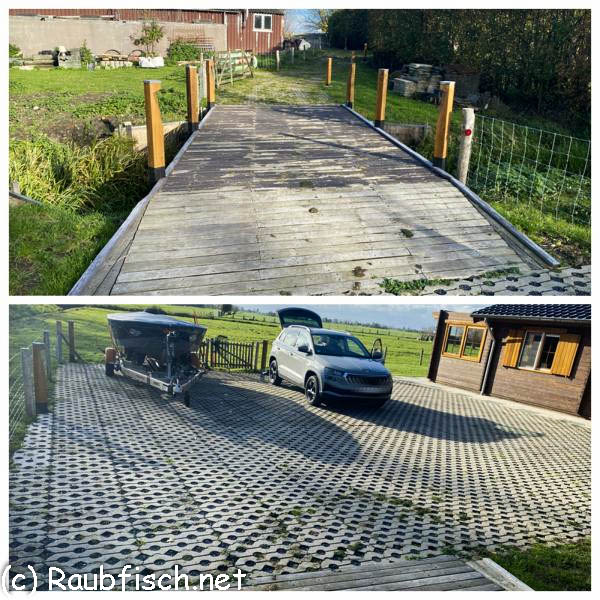 Kaum war ich von der Teamtour wieder zu Hause, liefen schon die Vorbereitungen zur nächsten Fahrt ins heilige Land. Wir hatten uns für unsere Urlaubswoche ein neues Ferienhaus ausgesucht, vor allem, weil die Stammunterkunft wie erwartet so kurzfristig nicht verfügbar war. Neu im wahrsten Sinne des Wortes, denn dieses Ferienhaus gibt es tatsächlich erst seit Februar 2025. Die Anfahrt verlief problemlos, als wir jedoch an der "Einfahrt" zum Haus standen, wusste ich nicht so recht, ob ich da nun so einfach runterfahren sollte. Wir haben es gemacht und wenn man einmal vor dem Haus ist, hat man auf dem wirklich großzügigen Parkplatz einiges an Fläche zur Verfügung. Unser Gastgeber Adrie empfing uns herzlich und zeigte uns alles, was wir wissen mussten. Tolles Haus komplett neu aus Holz gebaut. Es ist sehr ländlich gelegen, aber zur nächsten Autobahn ist es dann doch mit 6km nicht so weit.